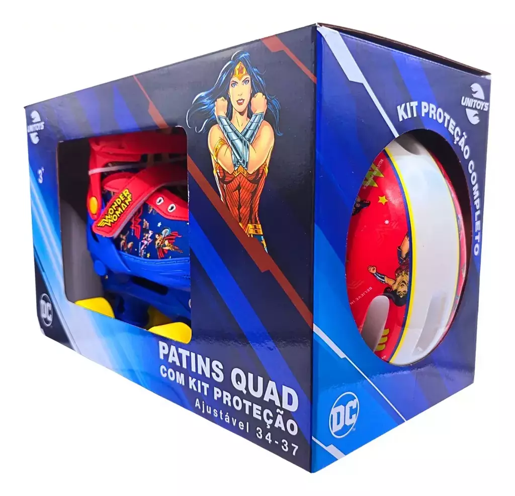 Patins Quad Mulher Maravilha C/ Kit Proteção 34-37 Unitoys